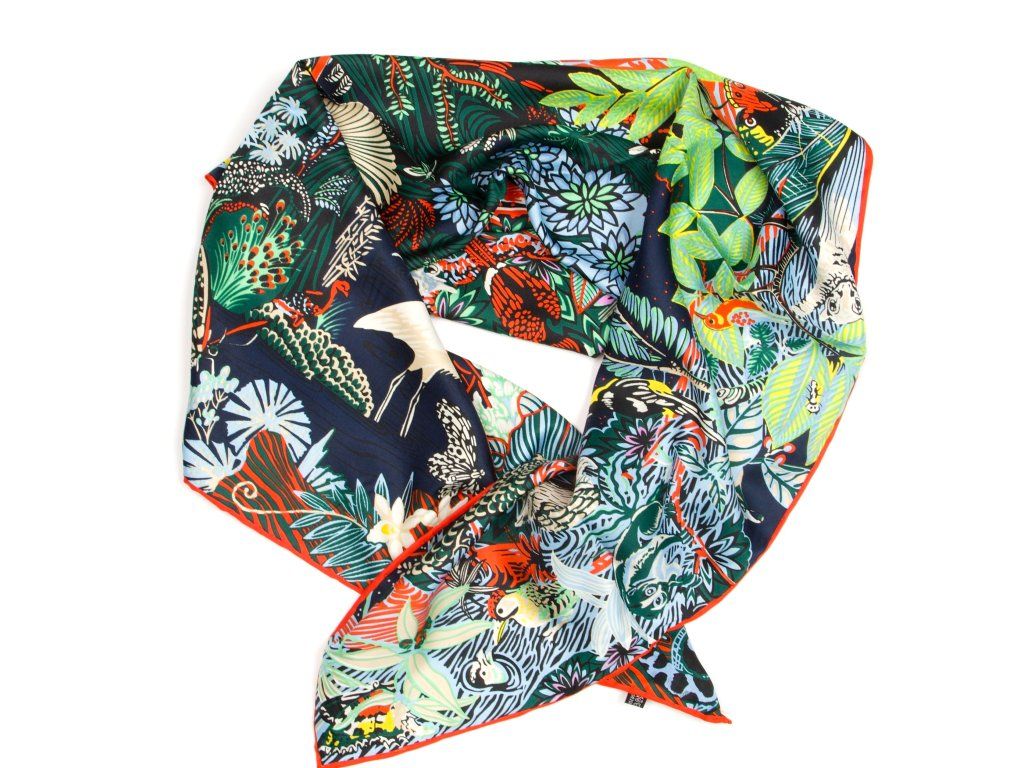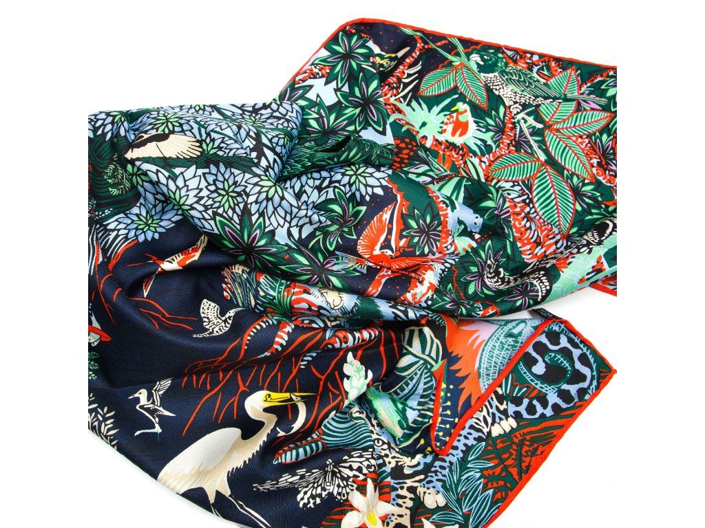 Dámska šatka v zelenej farbe s motívom. Šatku je možné nosiť klasicky na krku, skvele však bude vyzerať aj na kabelke či vo vlasoch.
