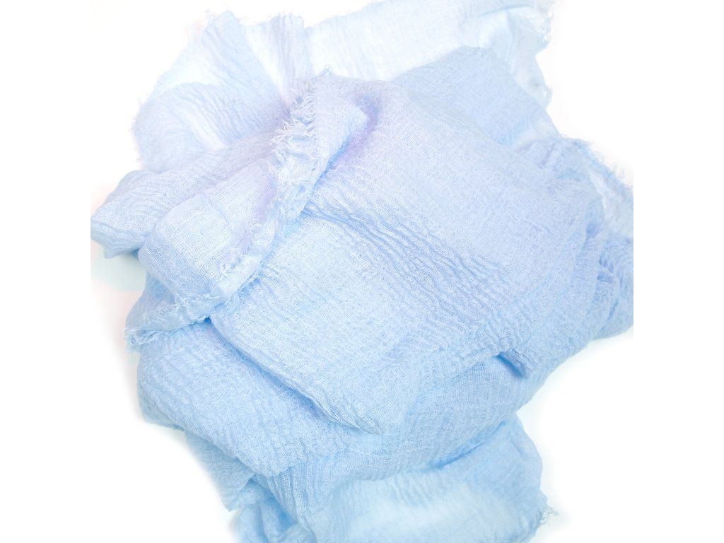 Ľahká dámska šatka vo svetlo modrej farbe. Šatka je po obvode zdobená krátkymi strapcami.