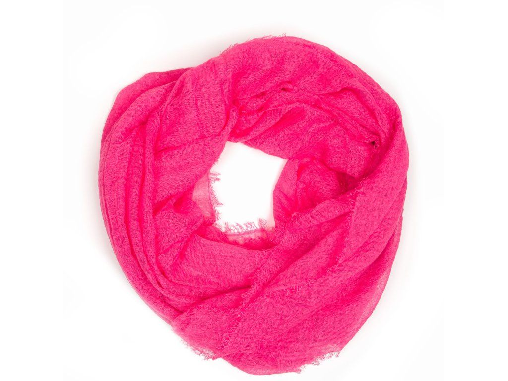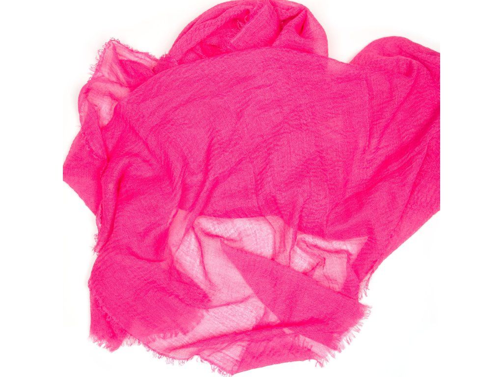 Ľahká dámska šatka v ružovej farbe. Šatka je po obvode zdobená krátkymi strapcami. Šatka môže slúžiť ako pléd na letné večery aj spoločenské udalosti.
