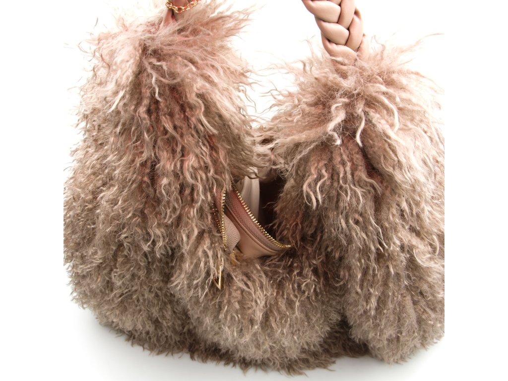 Štýlová kabelka s kožušinou v taupe farbe pôsobí luxusne a zároveň moderne. Je bez vonkajších vreciek, takže vynikne jej čistý a sofistikovaný dizajn. Interiér ponúka jedno priestranné hlavné vrecko a menšie bočné vrecko na drobnosti, ktoré sa uzatvára zipsom. Súčasťou kabelky je prídavný popruh s karabínami, vďaka ktorému je možné ju pohodlne nosiť aj cez telo. Kabelka sa uzatvára zipsom a jej vzhľad podčiarkuje zlatý prívesok Alex Max.