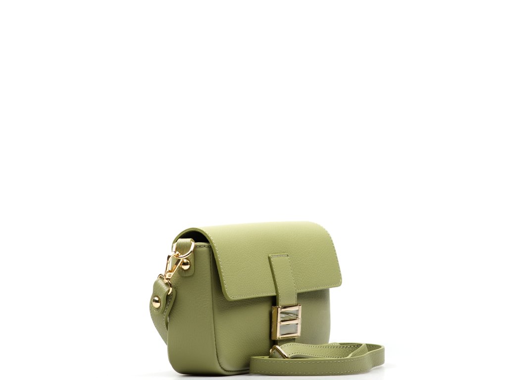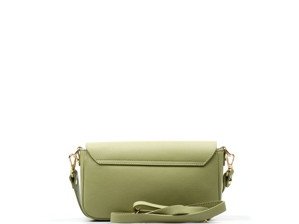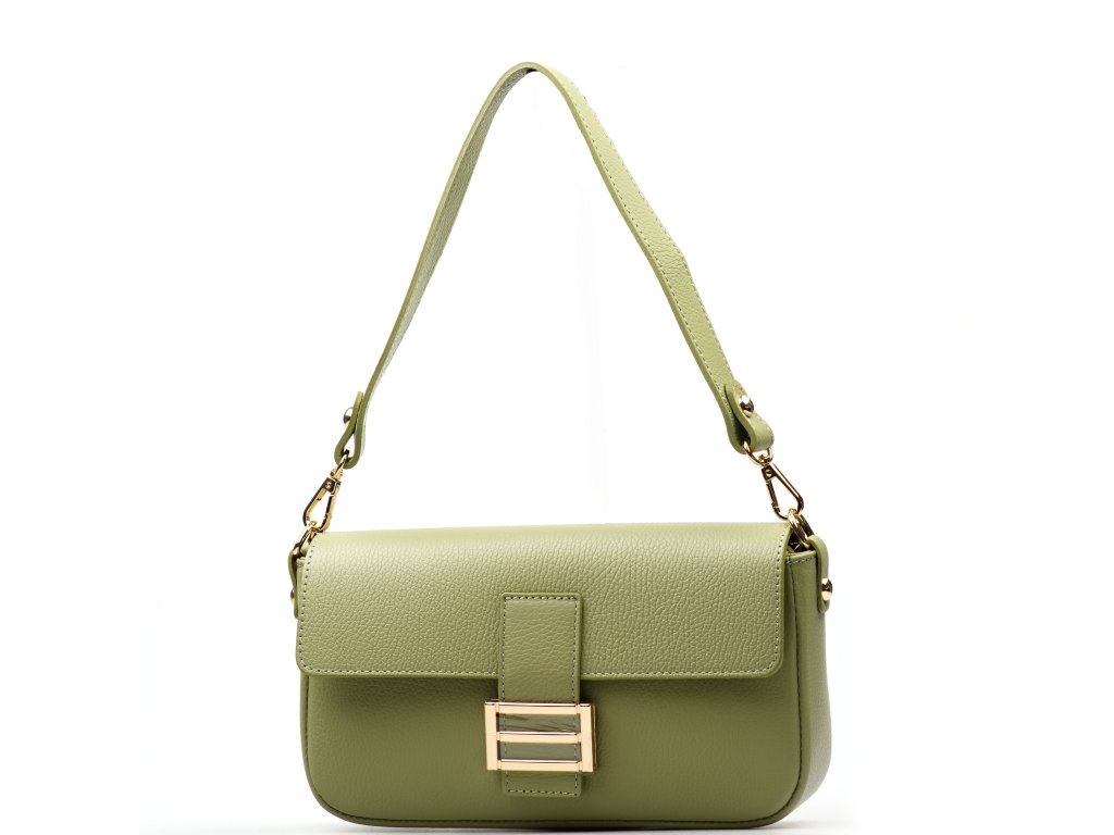 Kožená crossbody kabelka v zelenej farbe. Prakticky riešený interiér ponúka jedno hlavné vrecko a jedno menšie vrecko na zips pre bezpečné uloženie drobností. Kabelku možno nosiť ako listovú kabelku do ruky, pohodlne cez rameno alebo ako crossbody cez telo vďaka prídavným popruhom. Uzatváranie na zips je doplnené ozdobnou sponou, ktorá dodáva kabelke elegantný vzhľad.