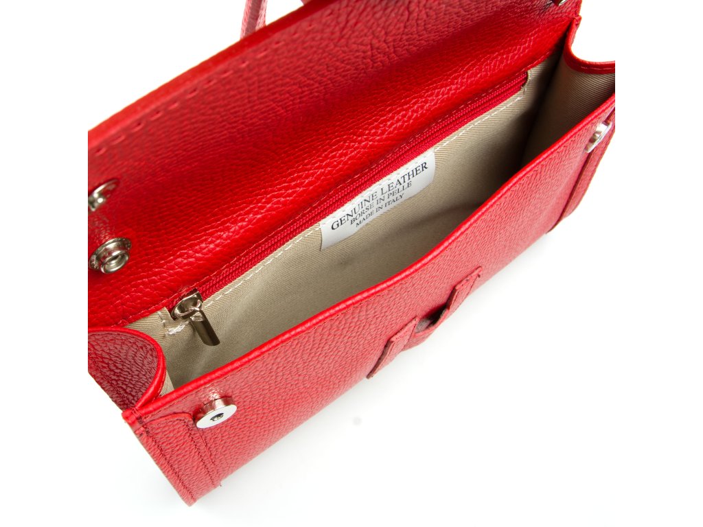 Elegantná červená kožená kabelka, ktorá zaujme na prvý pohľad. Klopa s ozdobným zapínaním dodáva modelu rafinovaný detail, vďaka ktorému vyzerá rovnako dobre na večierku aj na každodennej prechádzke mestom. Nosíte ju ako listovú kabelku v ruke alebo prehodíte prídavný popruh cez telo – voľba je len na vás. Vnútri nájdete priestranné hlavné vrecko a praktické zadné vrecko na zips pre veci, ku ktorým potrebujete rýchly prístup.