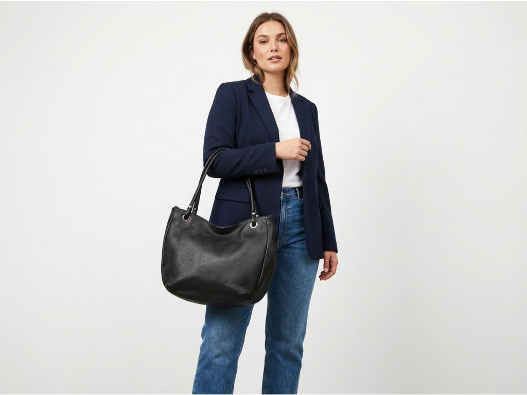 Kožená kabelka cez rameno v elegantnej čiernej farbe je ideálnym doplnkom na každodenné nosenie. Vďaka dlhému popruhu ju môžete pohodlne nosiť cez telo, čo zaisťuje maximálny komfort a voľnosť pohybu. Interiér kabelky je navrhnutý s ohľadom na praktickosť a organizáciu. Ponúka hlavné úložné vrecko, do ktorého sa zmestí všetko potrebné, a menšie bočné vrecká, ideálne na uloženie drobností, ako sú kľúče, telefón alebo peňaženka. Kabelka sa bezpečne uzatvára zipsom, čo chráni vaše veci pred stratou. Tento štýlový a funkčný doplnok je perfektnou voľbou pre každú ženu, ktorá ocenia spojenie módy a praktickosti.
