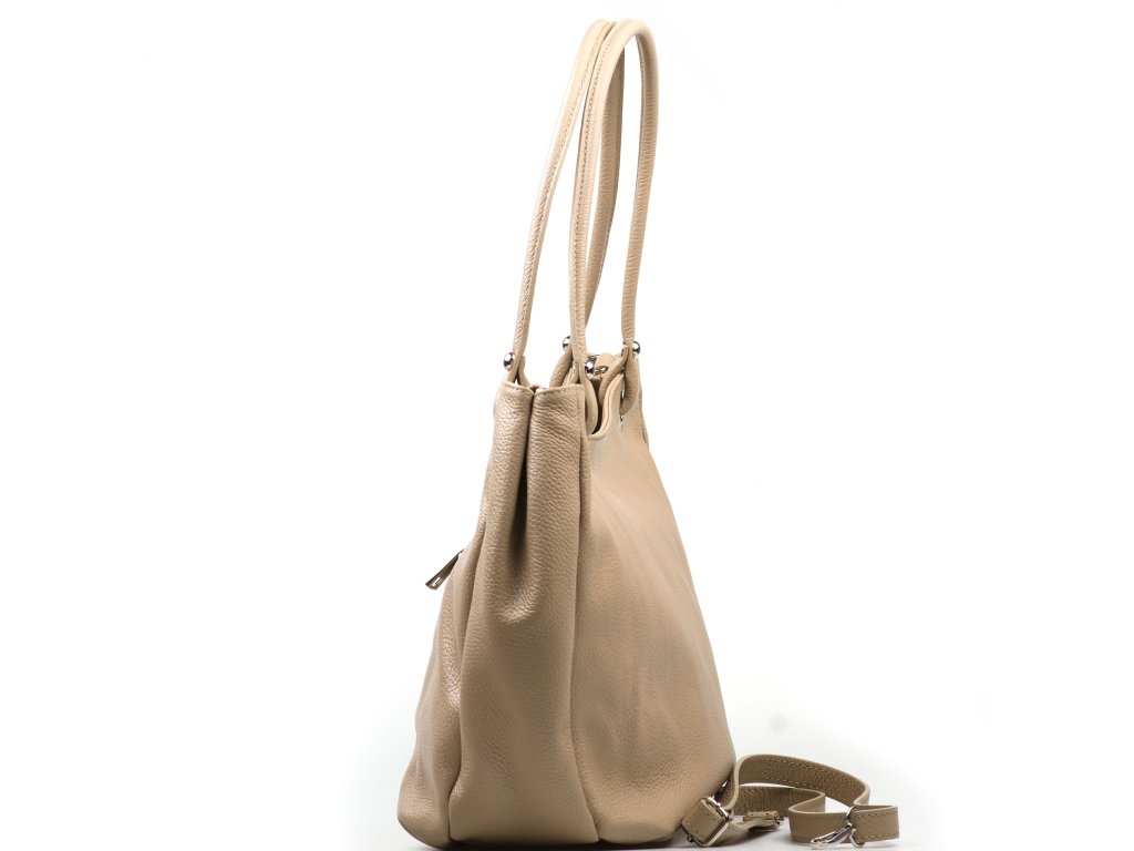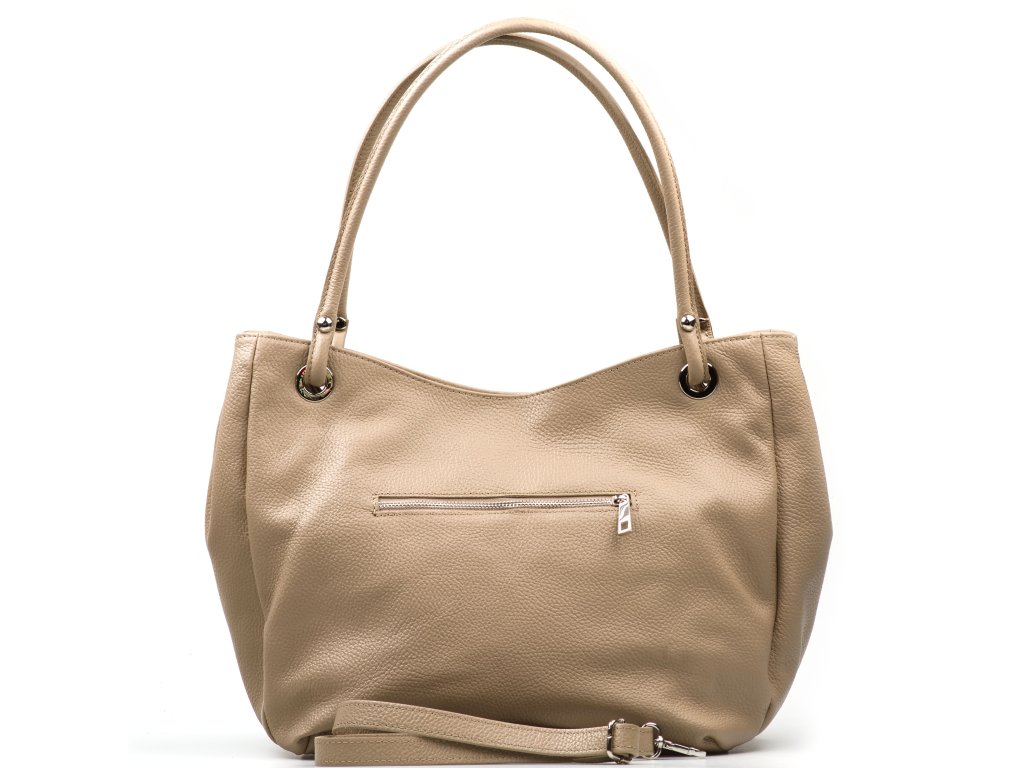 Kožená kabelka cez rameno v elegantnej béžovej farbe je ideálnym doplnkom na každodenné nosenie. Vďaka dlhému popruhu ju môžete pohodlne nosiť cez telo, čo zaisťuje maximálny komfort a voľnosť pohybu. Interiér kabelky je navrhnutý s ohľadom na praktickosť a organizáciu. Ponúka hlavné úložné vrecko, do ktorého sa zmestí všetko potrebné, a menšie bočné vrecká, ideálne na uloženie drobností, ako sú kľúče, telefón alebo peňaženka. Kabelka sa bezpečne uzatvára zipsom, čo chráni vaše veci pred stratou. Tento štýlový a funkčný doplnok je perfektnou voľbou pre každú ženu, ktorá ocenia spojenie módy a praktickosti.