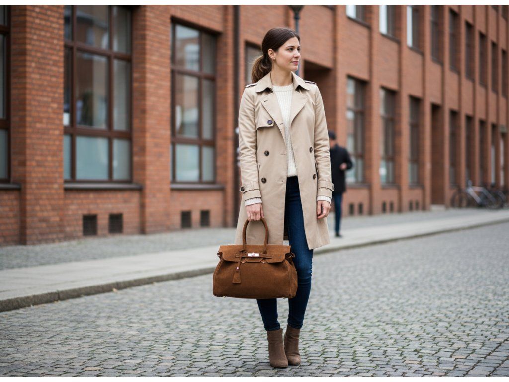 Semišová kožená kabelka do ruky aj cez rameno v hnedej farbe. Interiér kabelky disponuje jedným hlavným úložným vreckom a jedným malým bočným. Hornú časť kabelky zdobí kožený popruh so zlatými sponami. Súčasťou kabelky je prídavný popruh na nosenie cez telo. Kabelka sa uzatvára pomocou zipsu alebo chlopne.