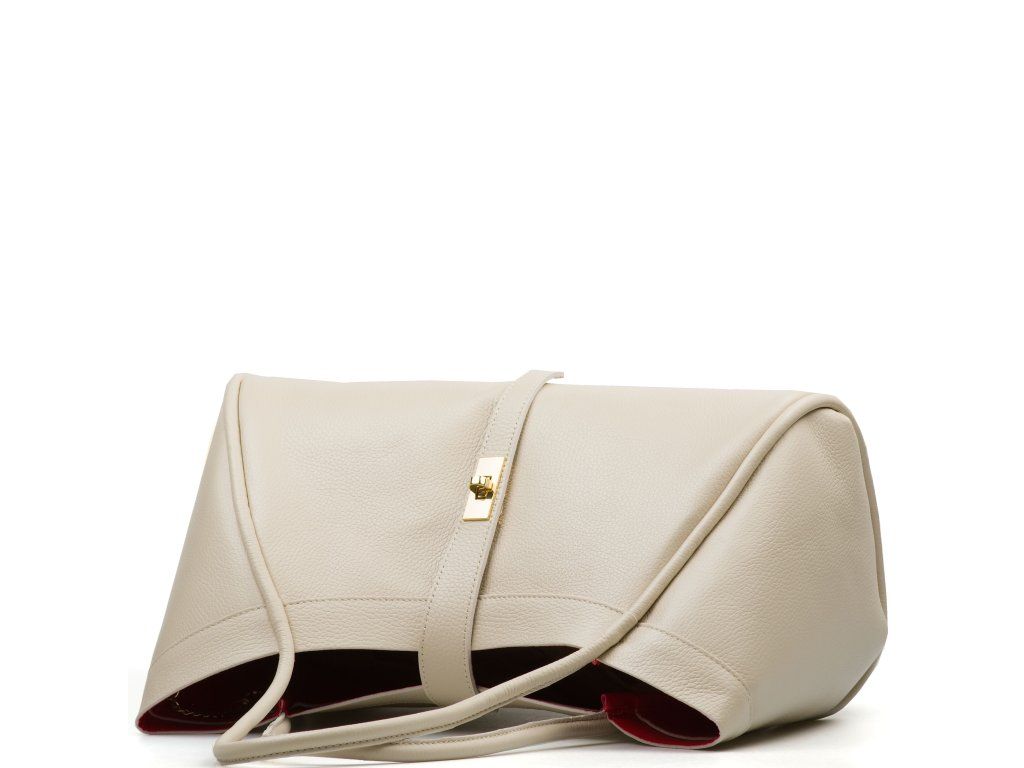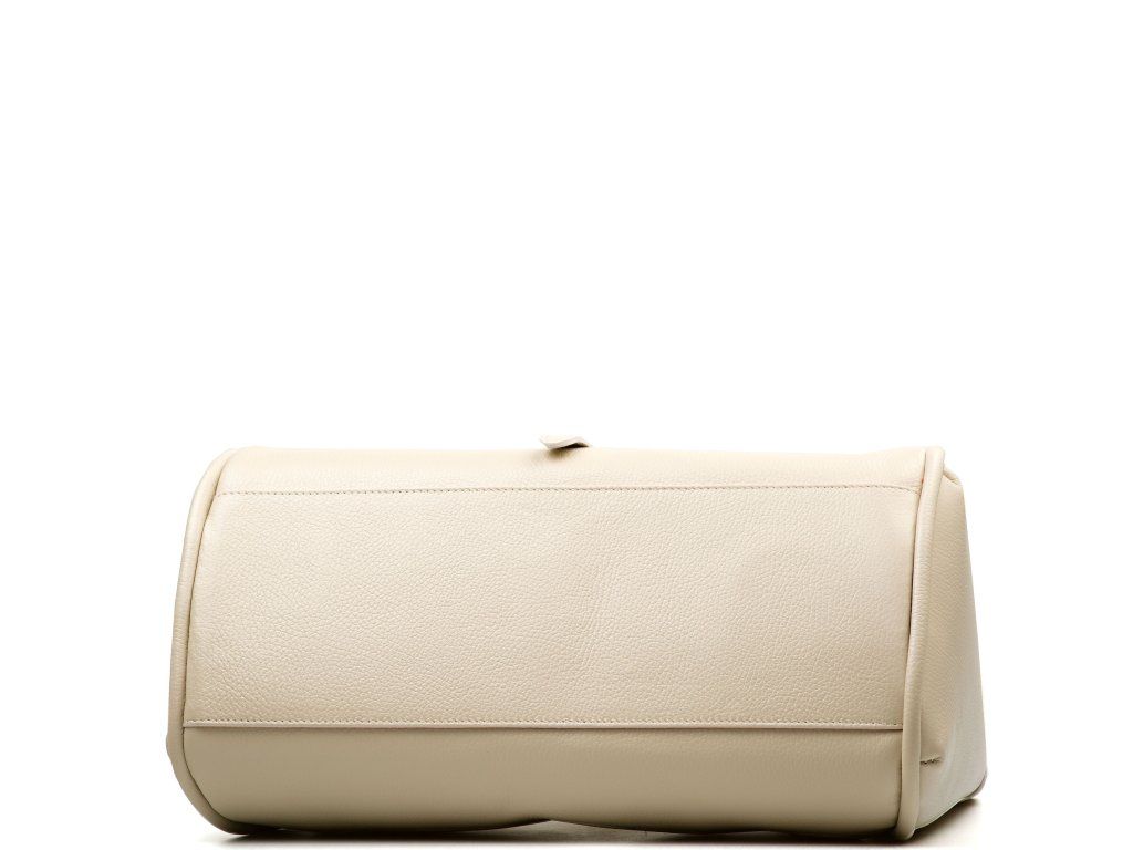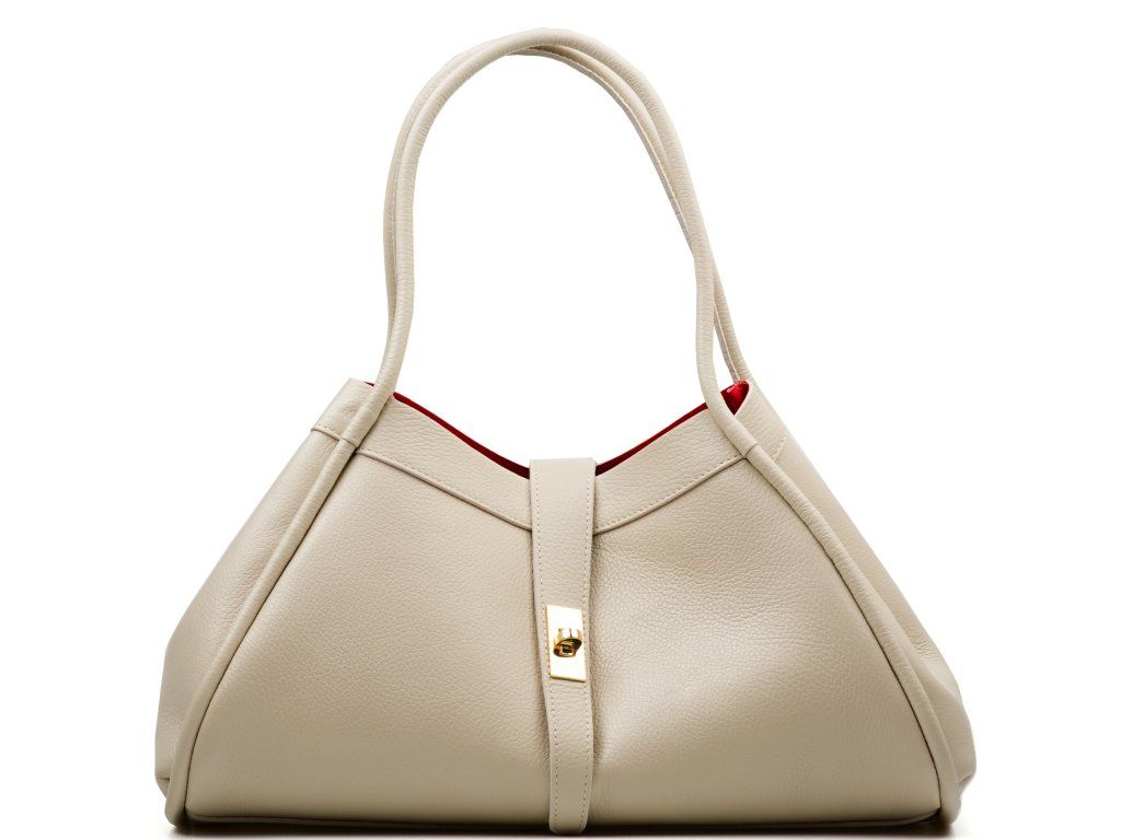 Elegantná kožená kabelka v béžovej farbe je nadčasovým doplnkom, ktorý ľahko zladíte s každým outfitom. Skvele doplní ako formálny look do práce, tak aj ležérnejšiu kombináciu na bežné nosenie. Vďaka premyslenému dizajnu ju môžete nosiť v ruke aj cez rameno, a prispôsobiť ju tak presne svojim potrebám aj príležitosti. Veľkou prednosťou tejto kabelky sú dva tvarové varianty nosenia, vďaka ktorým získate hneď dva elegantné vzhľady v jednom. Interiér ponúka jedno hlavné priestranné vrecko a prídavné voľné vrecko, ktoré vám uľahčí organizáciu drobností, ktoré chcete mať stále po ruke. Kabelka sa uzatvára ozdobnou chlopňou, ktorá celému modelu dodáva sofistikovaný a ženský vzhľad.
