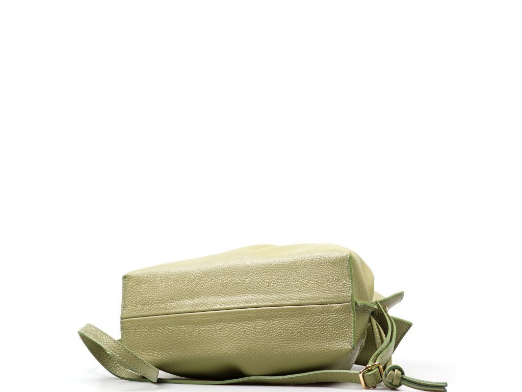 Kožená kabelka v tvare vrecúška v zelenej farbe zaujme svojim originálnym dizajnom a jemným spracovaním. V hornej časti sa sťahuje koženou šnúrkou, ktorá vytvára efektné nariasenie kože a dodáva kabelke šarm. Súčasťou je odnímateľný prídavný popruh s karabínami, vďaka ktorému je možné ju nosiť nielen v ruke, ale aj cez rameno či ako crossbody. Interiér ponúka jedno priestranné hlavné vrecko pre všetky nevyhnutnosti. Kabelka sa uzatvára cvočkom a je ideálnym doplnkom pre každodenné nosenie aj špeciálne príležitosti.