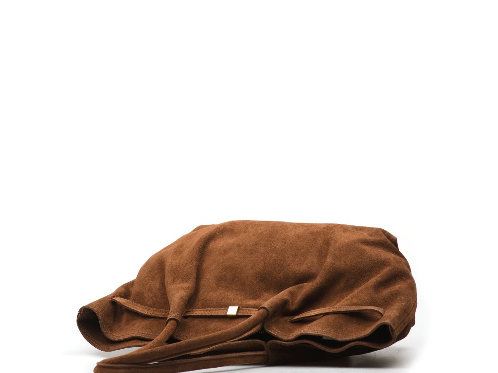 Luxusná semišová kabelka do ruky v hnedej farbe - štýlový dámsky doplnok pre každodenné nosenie aj večerné udalosti. Elegantný design a dostatok priestoru pre telefón, peňaženku aj drobnosti. Ideálna kabelka pre ženy, ktoré chcú vyzerať šik. Kabelka sa uzatvára zipsom. Súčasťou kabelky je aj dlhý popruh na nosenie cez rameno.