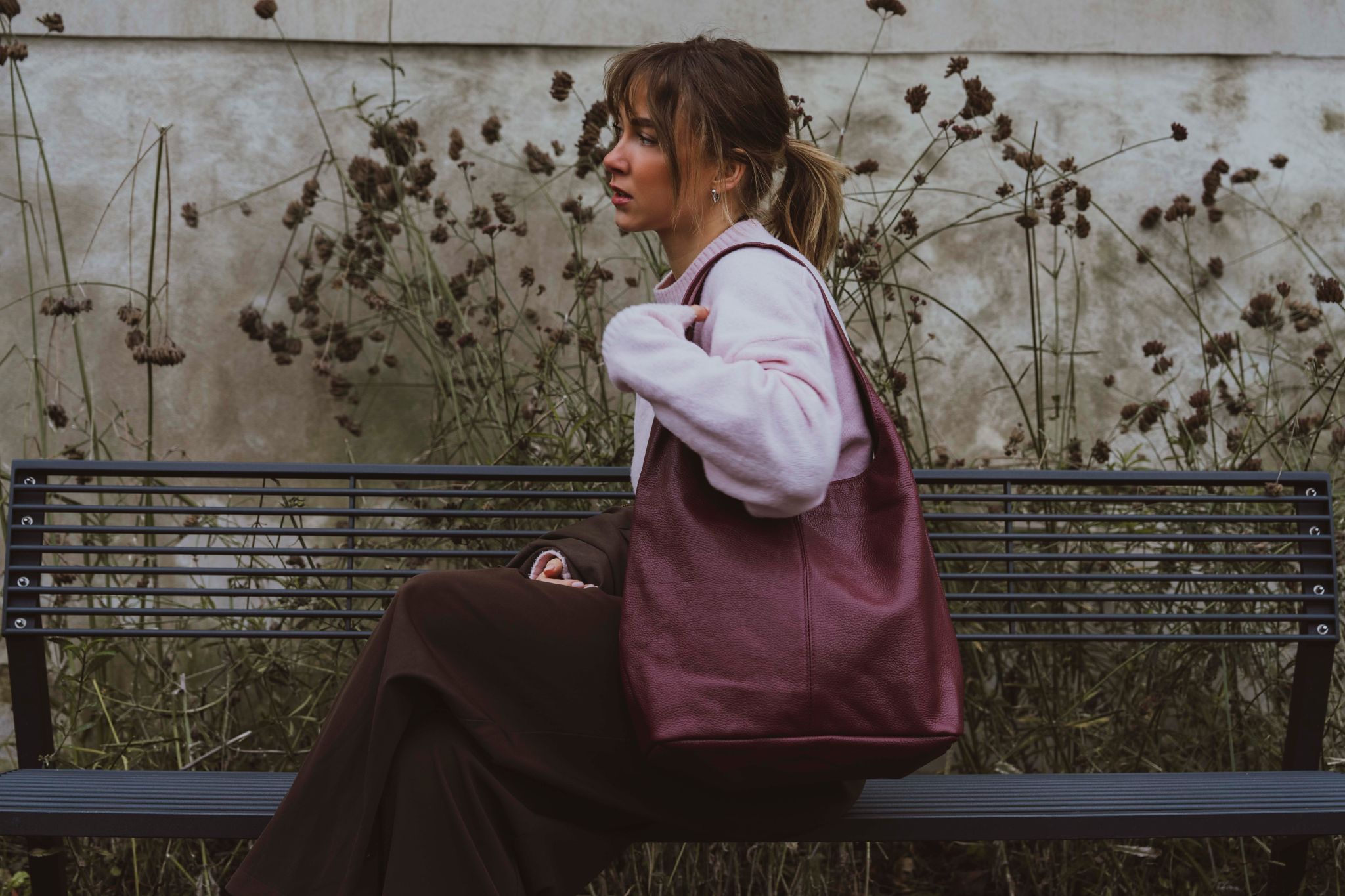 Minimalistická kožená kabelka cez rameno vo vínovo červenej farbe je elegantným a nadčasovým doplnkom, ktorý sa hodí ku každému outfitu. Interiér ponúka jedno priestranné hlavné vrecko a malé vrecko na retiazke, ideálne pre uloženie drobných cenností. Kabelka sa uzatvára zipsom, čo zaistí bezpečné uloženie všetkých vašich vecí. Jednoduchý, ale štýlový dizajn z nej robí ideálnu kabelku na každodenné nosenie aj špeciálne príležitosti.