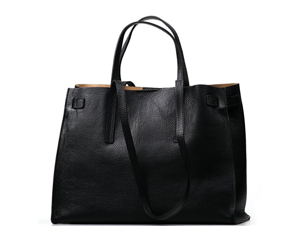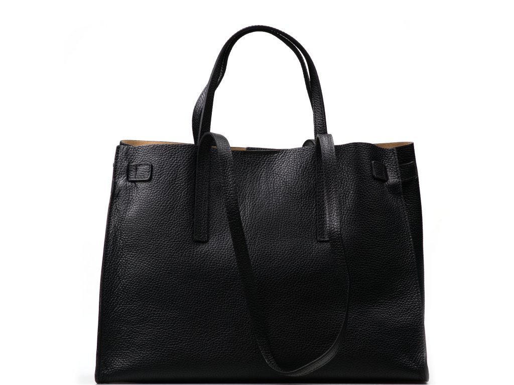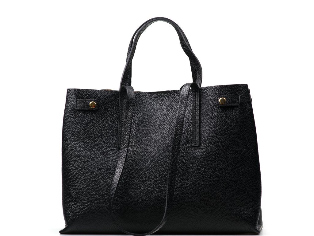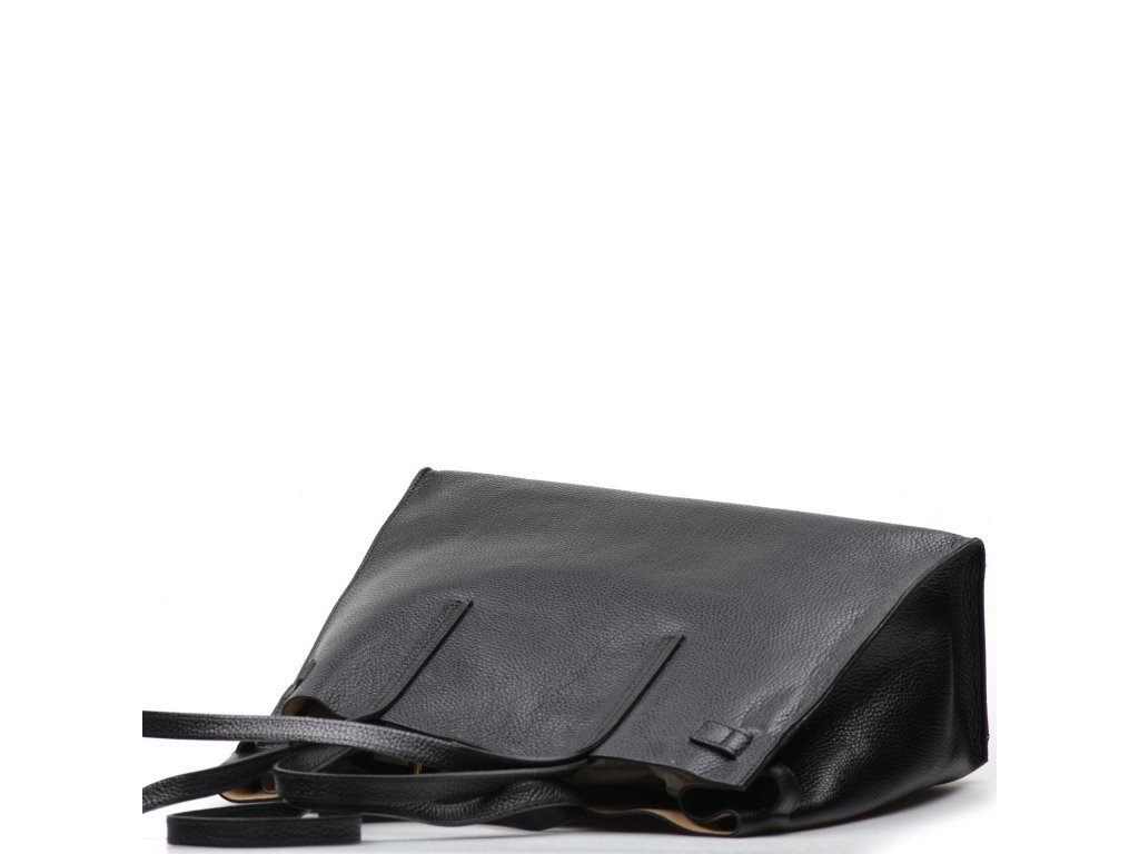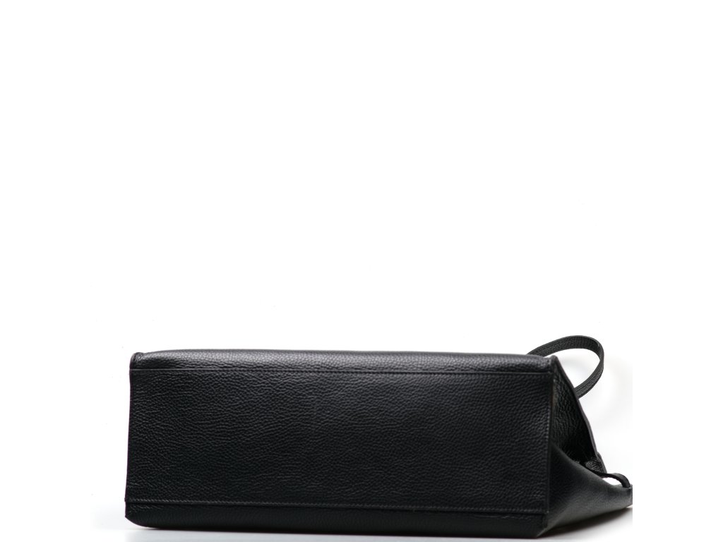 Minimalistická kožená kabelka v čiernej farbe, ktorú môžete nosiť elegantne v ruke aj pohodlne cez rameno. Interiér ponúka jedno veľké hlavné vrecko na každodenné nevyhnutnosti a navyše pevné prídavné vrecko na zips – ideálne na drobnosti, ktoré chcete mať zvlášť av bezpečí (napr. kľúče, karty alebo rúž). Kabelka sa uzatvára cvokom, takže ju rýchlo otvoríte aj zatvorte počas chvíľky.
