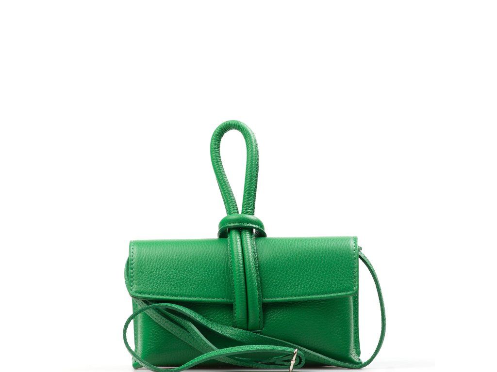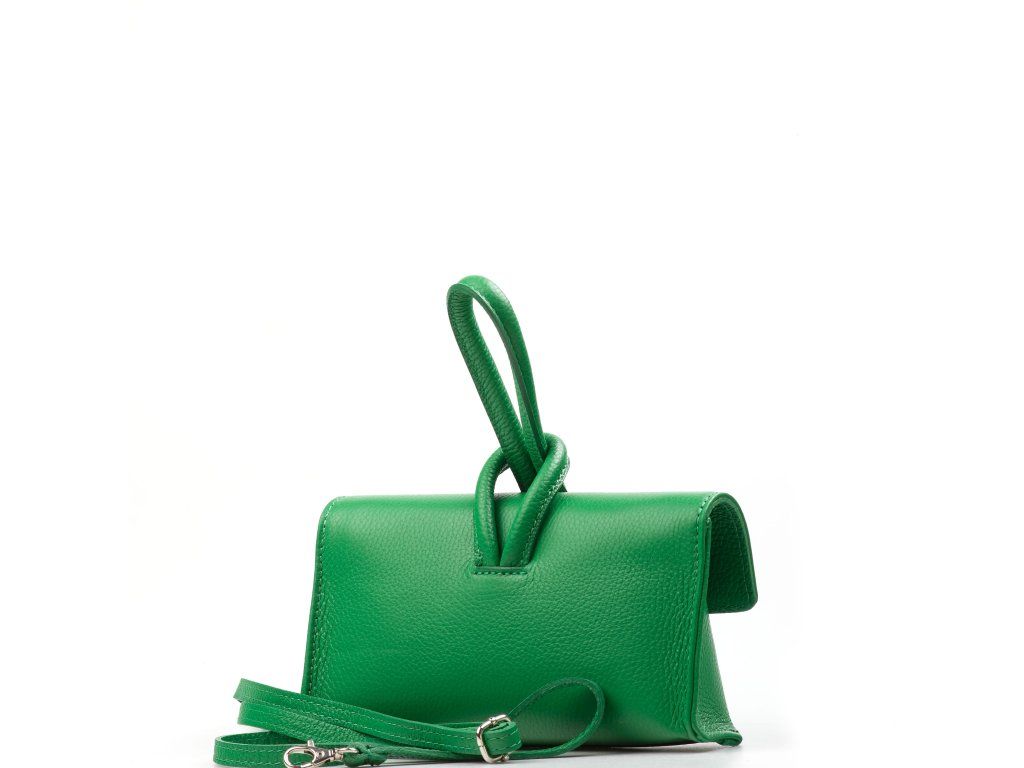 Dámska kožená kabelka v zelenej farbe. Minimalistická kabelka vyrobená z matnej kože. Súčasťou kabelky je prídavný popruh s karabínami, pričom ju môžete nosiť aj ako listovú kabelku. Interiér disponuje jedným veľkým a jedným malým úložným vreckom.