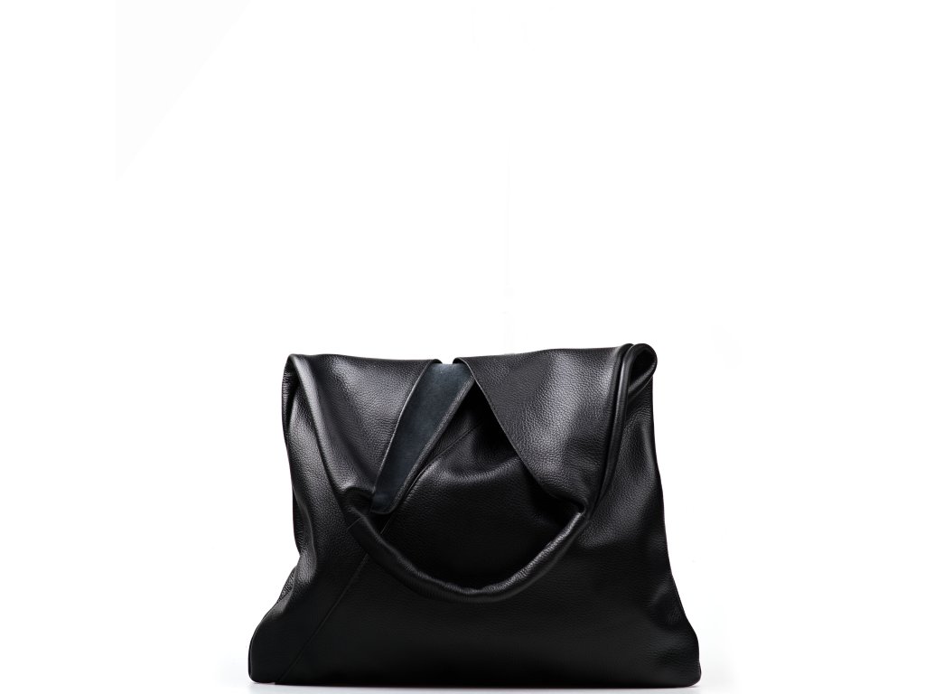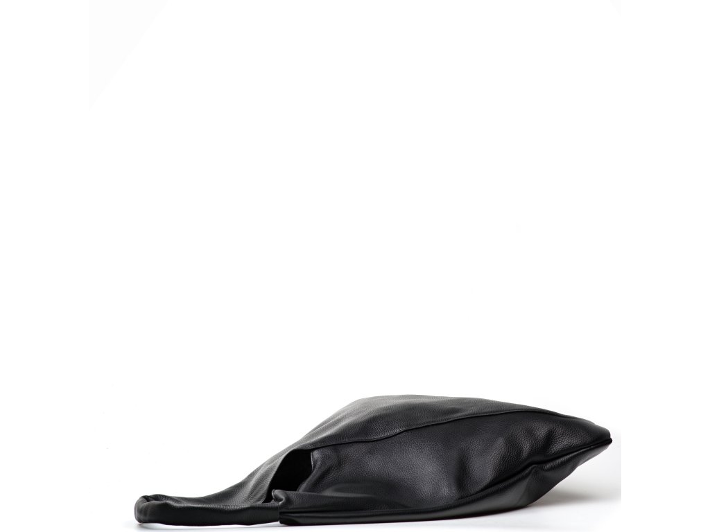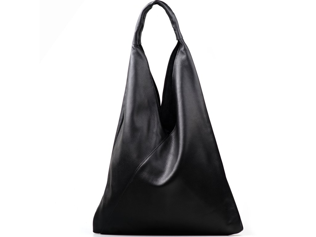 Kožená minimalistická maxi kabelka cez rameno v čiernej farbe je ideálnym kúskom pre tých, ktorí preferujú jednoduchosť a štýl. Jej unikátny geometrický trojuholníkový tvar priťahuje pozornosť a dodáva vášmu outfitu moderný nádych. Vnútri kabelky nájdete priestranné hlavné vrecko, ktoré pojme všetky vaše nevyhnutnosti, a menšie vrecko, ideálne pre drobnosti ako sú kľúče alebo rúž. Kabelka sa uzatvára originálnym spôsobom a to zviazaním kožených šnúrok.