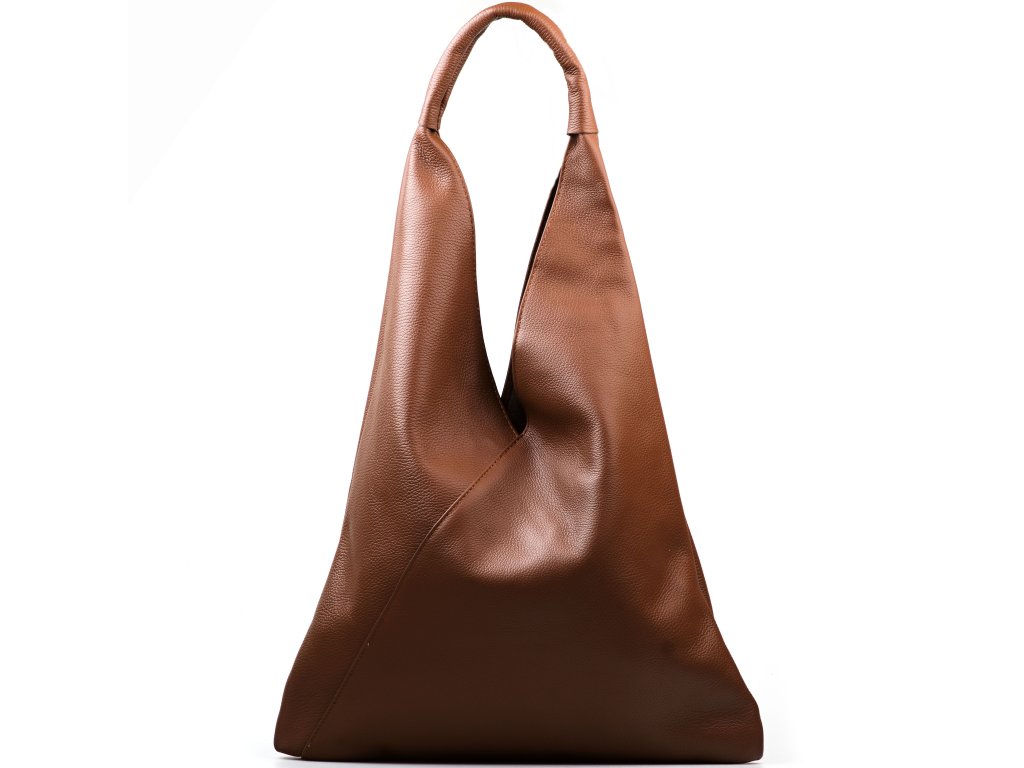 Kožená minimalistická maxi kabelka cez rameno v hnedej farbe je ideálnym kúskom pre tých, ktorí preferujú jednoduchosť a štýl. Jej unikátny geometrický trojuholníkový tvar priťahuje pozornosť a dodáva vášmu outfitu moderný nádych. Vnútri kabelky nájdete priestranné hlavné vrecko, ktoré pojme všetky vaše nevyhnutnosti, a menšie vrecko, ideálne pre drobnosti ako sú kľúče alebo rúž. Kabelka sa uzatvára originálnym spôsobom a to zviazaním kožených šnúrok.