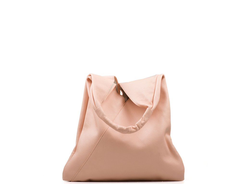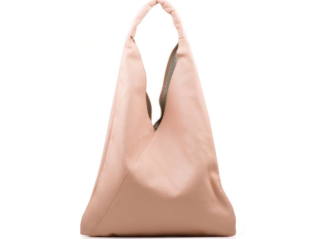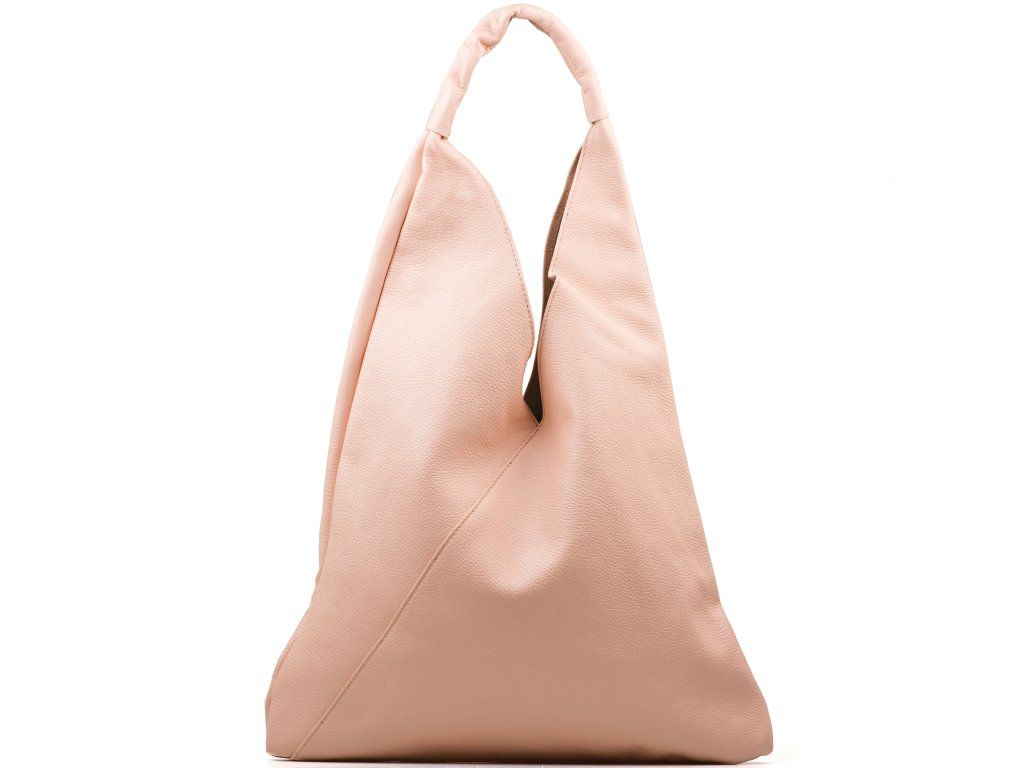 Kožená minimalistická maxi kabelka cez rameno v ružovej farbe je ideálnym kúskom pre tých, ktorí preferujú jednoduchosť a štýl. Jej unikátny geometrický trojuholníkový tvar priťahuje pozornosť a dodáva vášmu outfitu moderný nádych. Vnútri kabelky nájdete priestranné hlavné vrecko, ktoré pojme všetky vaše nevyhnutnosti, a menšie vrecko, ideálne pre drobnosti ako sú kľúče alebo rúž. Kabelka sa uzatvára originálnym spôsobom a to zviazaním kožených šnúrok.