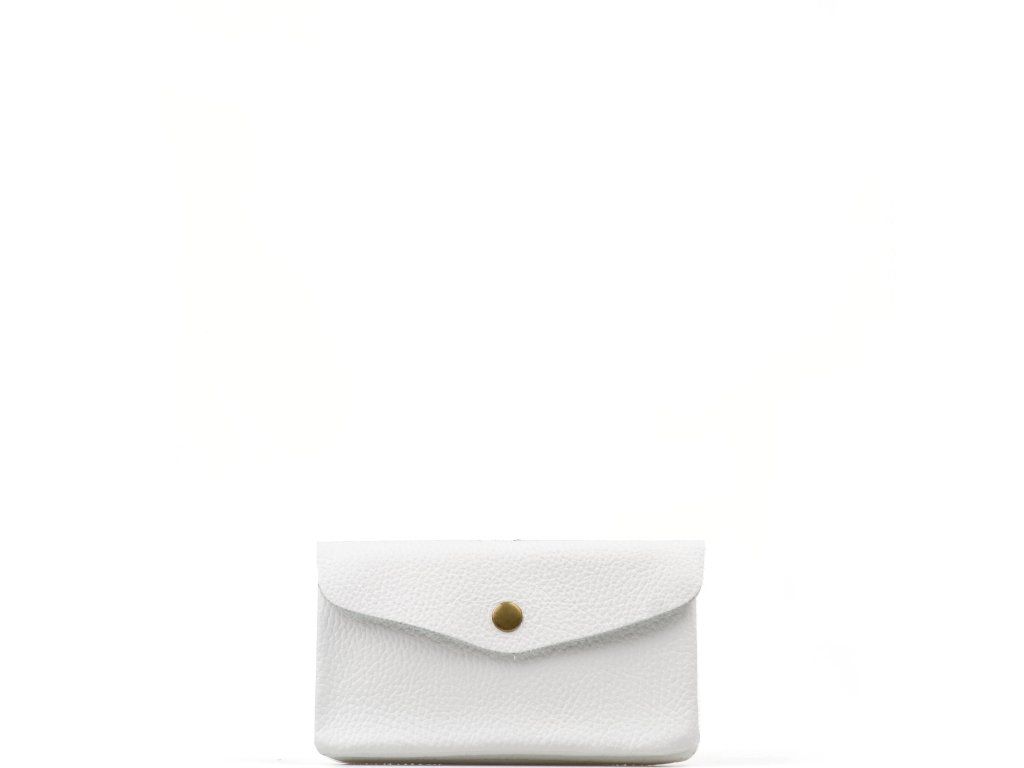 Dámske kožené púzdro v bielej farbe. Puzdro má k dispozícii tri vrecká, pričom jedno je určené na mince či drobnosti a je uzatvárateľné zipsom. Puzdro je uzatvárateľné cvokom.