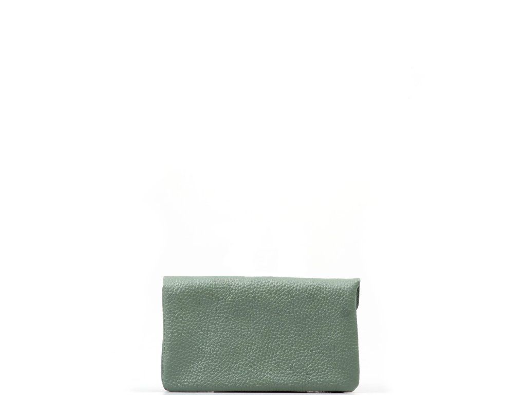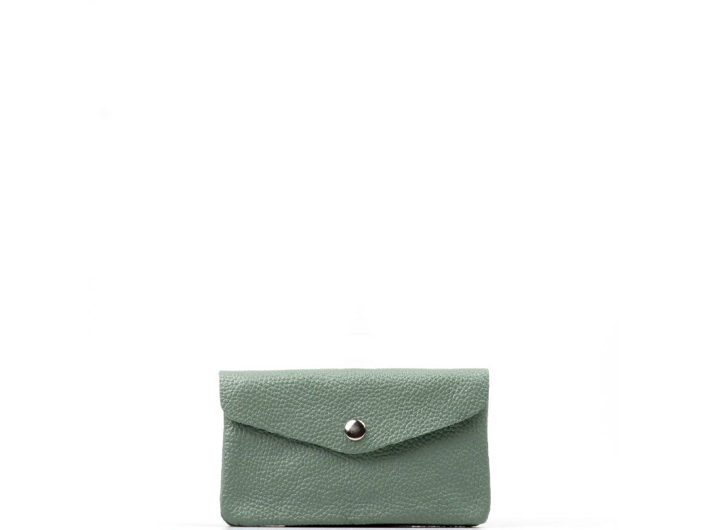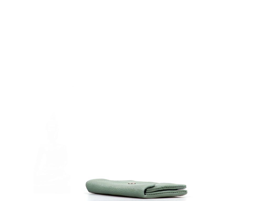 Dámske kožené púzdro v mentolovej farbe. Puzdro má k dispozícii tri vrecká, pričom jedno je určené na mince či drobnosti a je uzatvárateľné zipsom. Puzdro je uzatvárateľné cvokom.