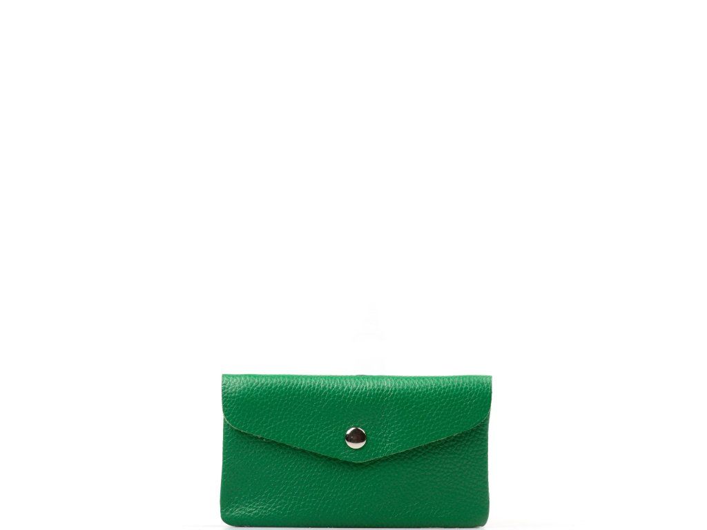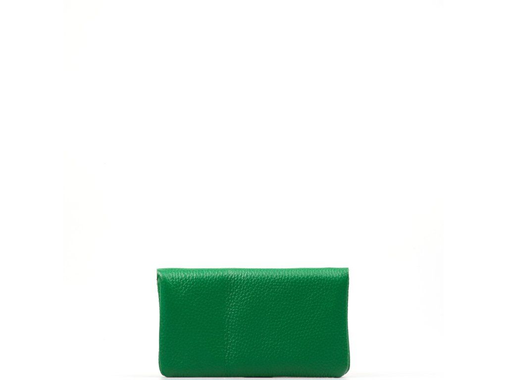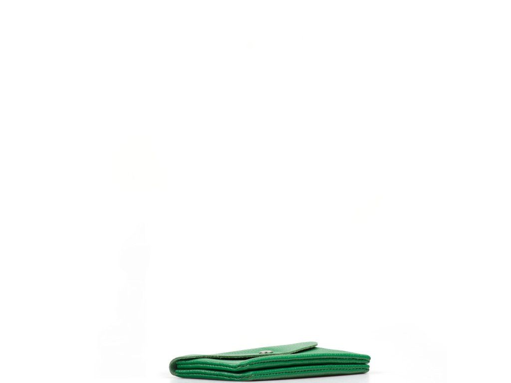 Dámske kožené púzdro v zelenej farbe. Puzdro má k dispozícii tri vrecká, pričom jedno je určené na mince či drobnosti a je uzatvárateľné zipsom. Puzdro je uzatvárateľné cvokom.